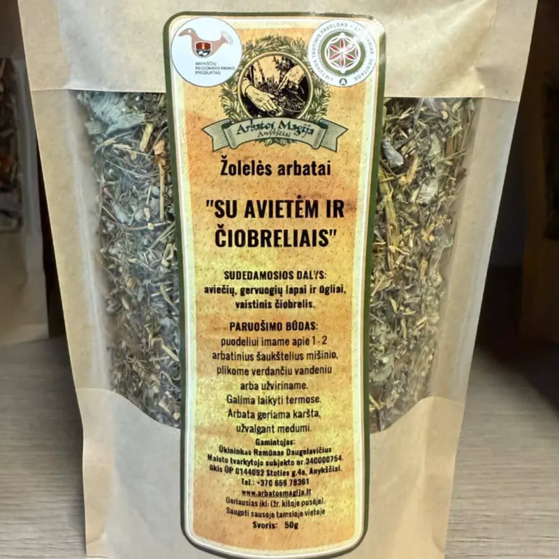 Produkto pavadinimas: Arbata „Su avietėm ir čiobreliais“, ARBATOS MAGIJA