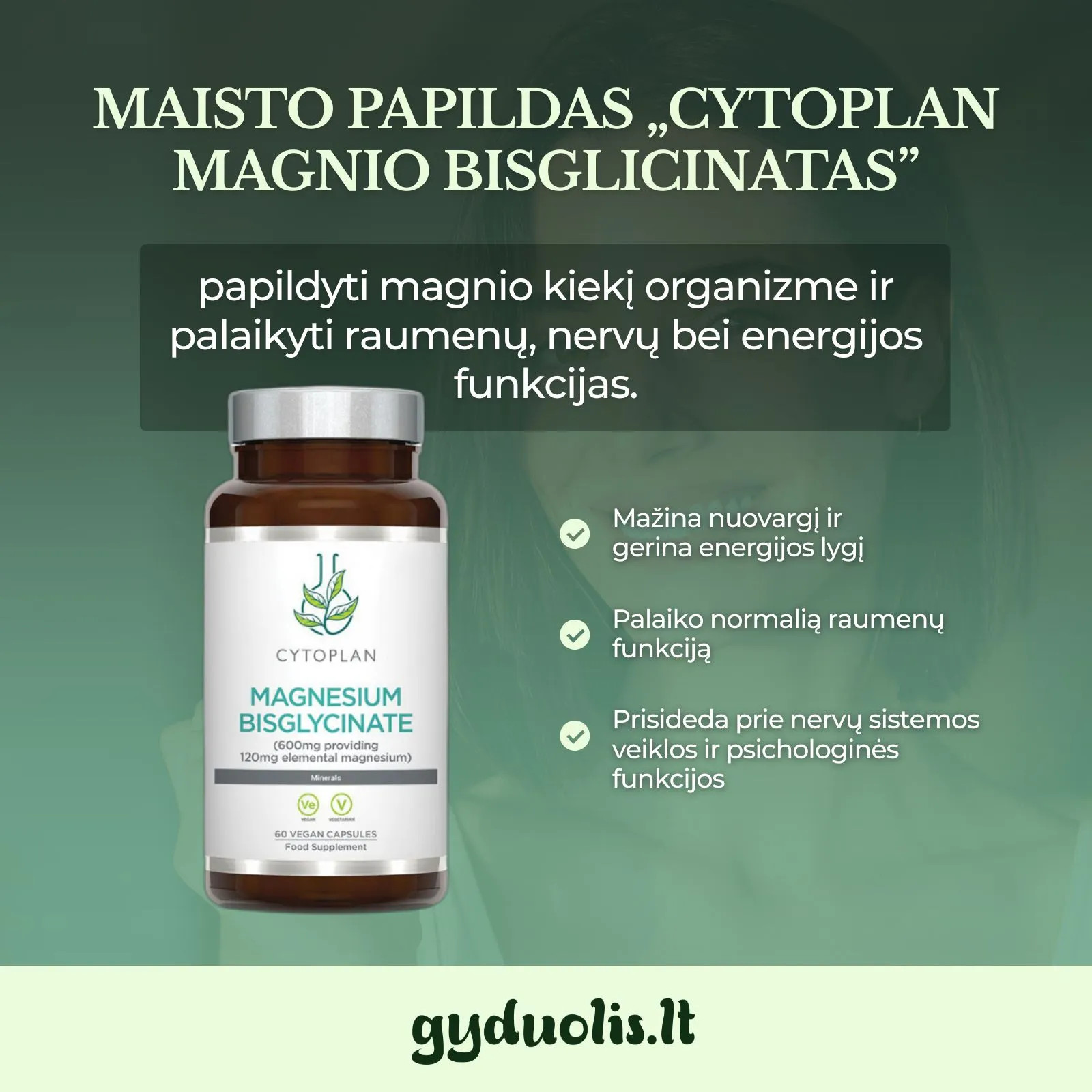Magnio bisglicinatas, CYTOPLAN, 60 kaps.