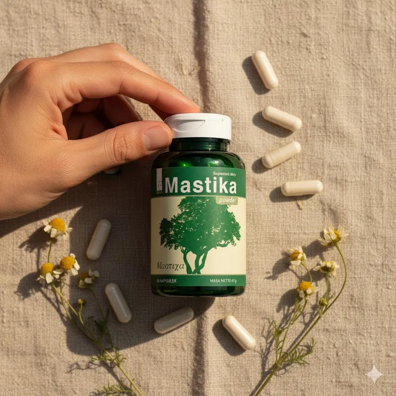 Mastika – tai natūrali Chios salos mastikmedžių (Pistacia lentiscus) derva. Šis natūralus papildas skirtas virškinimo sistemai palaikyti ir skrandžio komfortui gerinti. Patogi kapsulių forma leidžia lengvai įtraukti Mastiką į mitybos rutiną kaip natūralios kilmės ingredientą, kurį daugelis renkasi lengvesniam pojūčiui po maisto.
