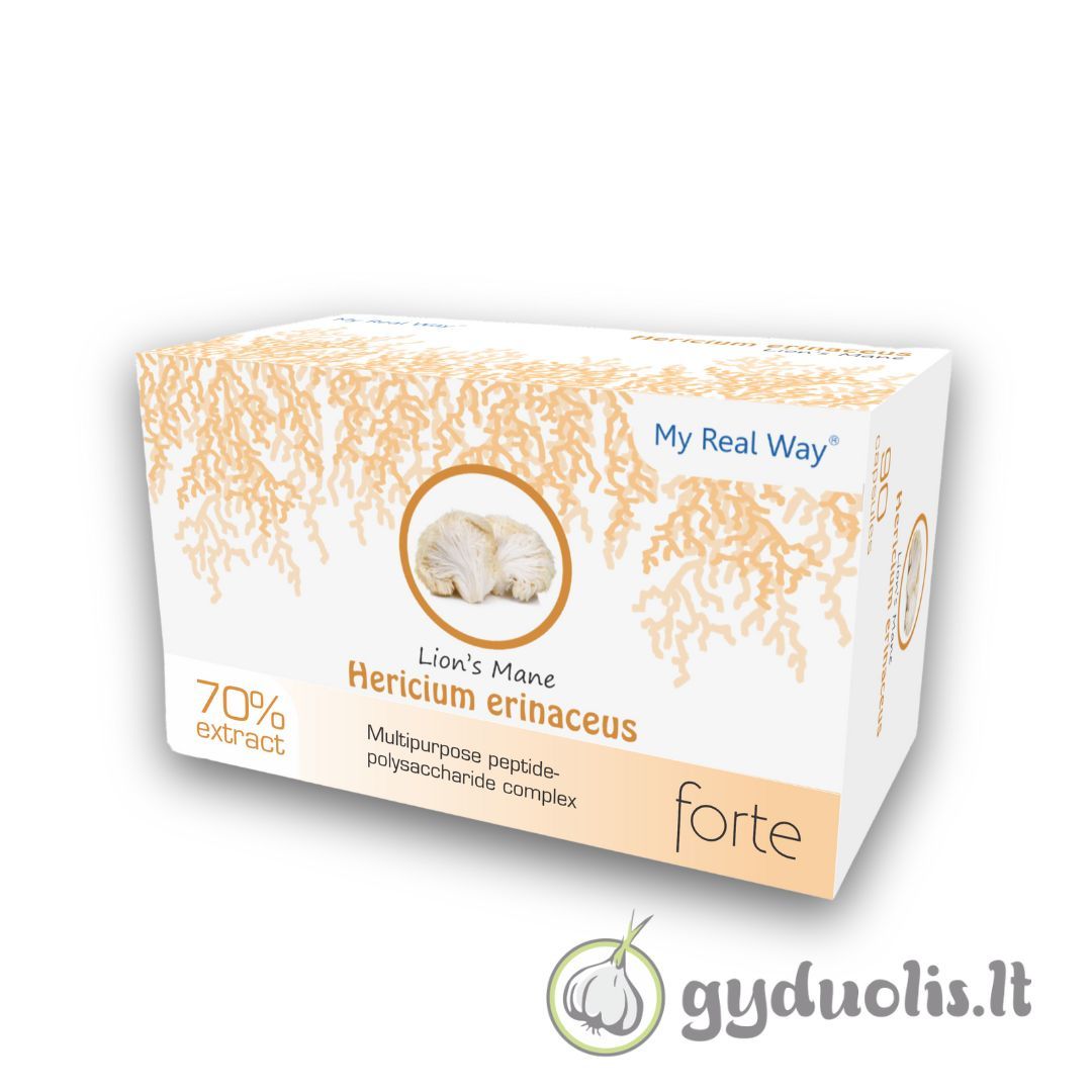 Peptidų ir polisacharidų kompleksas su 70 % Liūto karčių grybo ekstrakto.