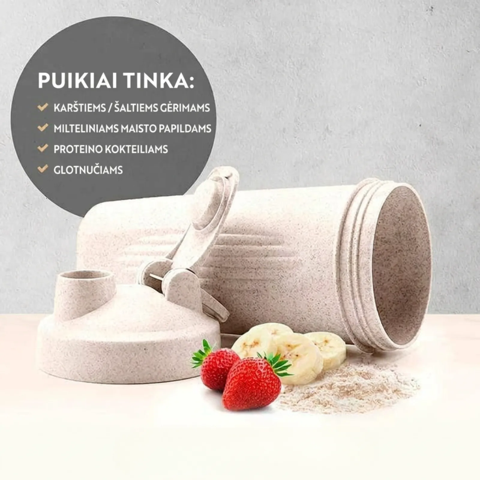 – Maišyti proteinų kokteilius, smoothie ar kitus maisto papildus – Kasdieniam naudojimui, sportui, kelionėms – Draugiška aplinkai, mažina vienkartinio plastiko naudojimą |