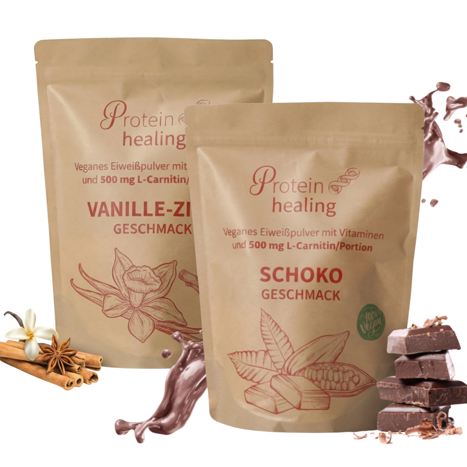 Baltymų kokteilių rinkinys su vitaminais, mineralais ir fermentais (2 x 500 g)